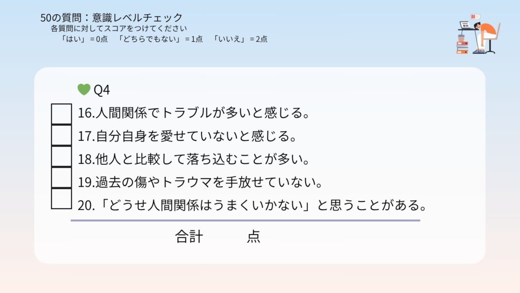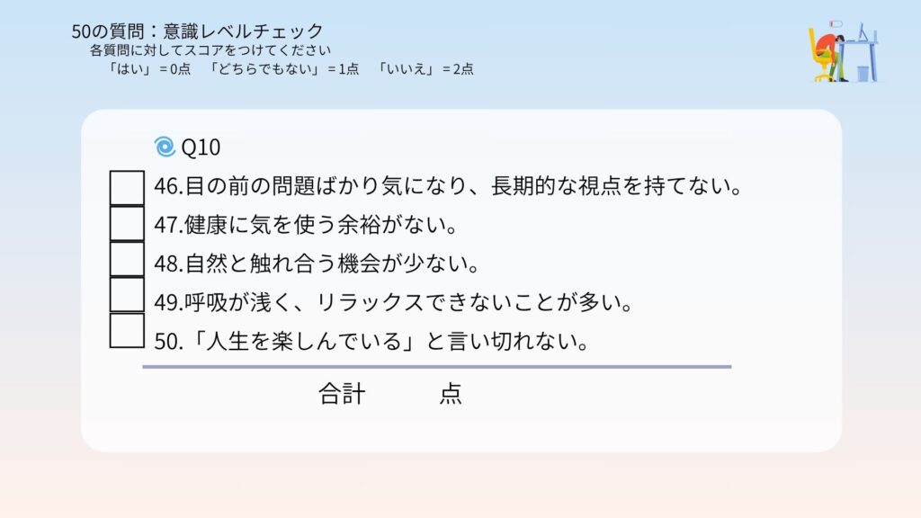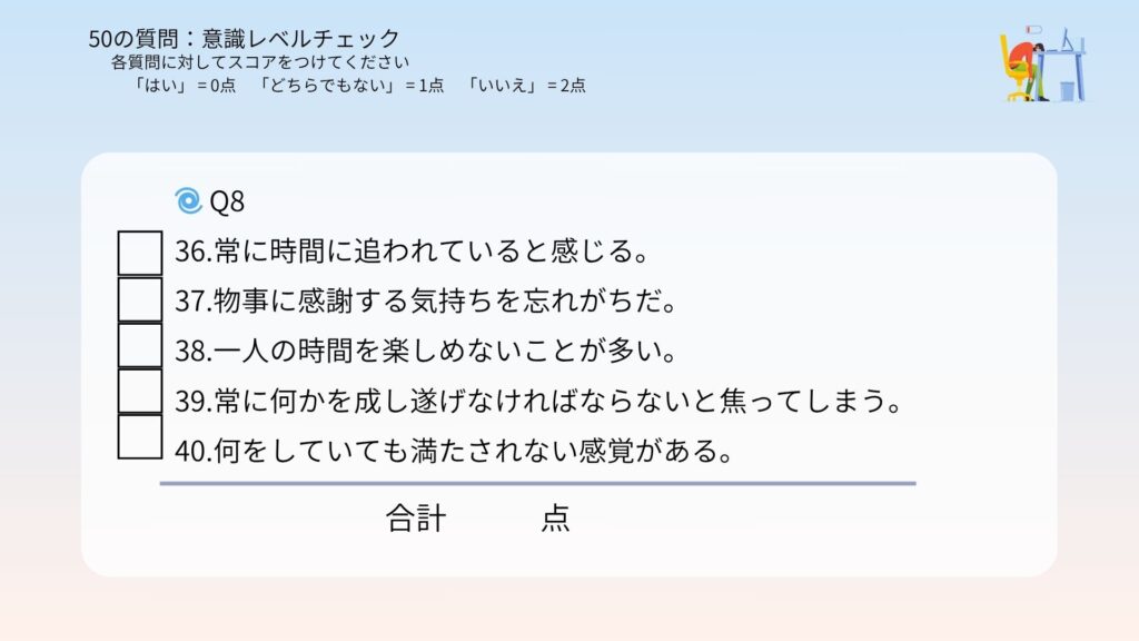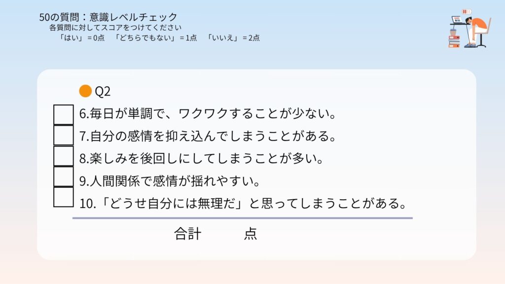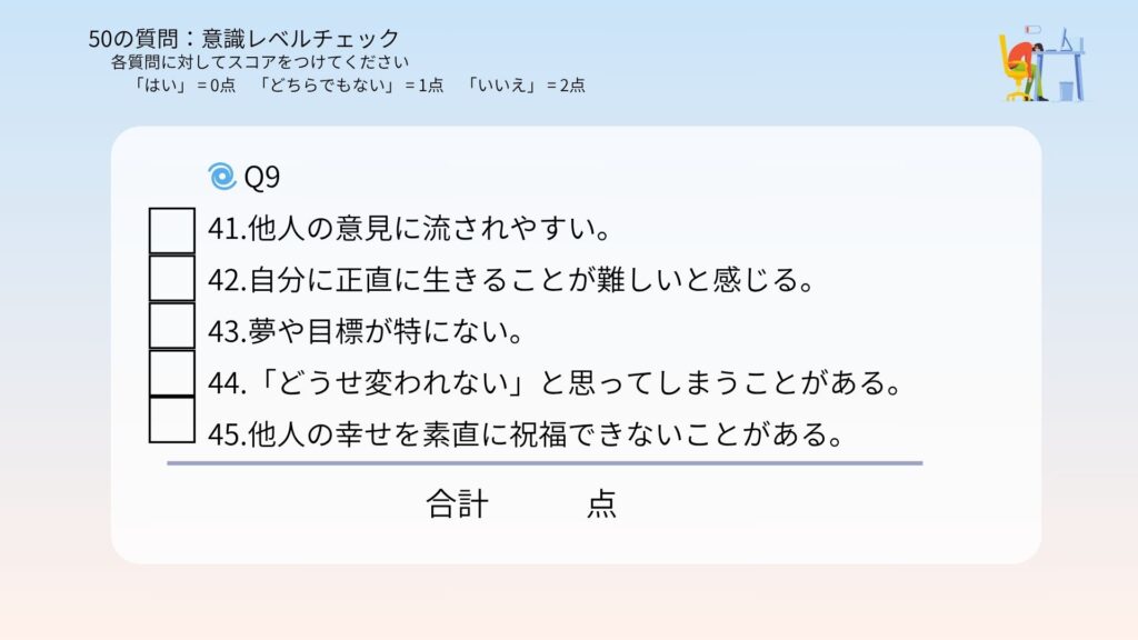 合計点があなたの今の意識レベルです!